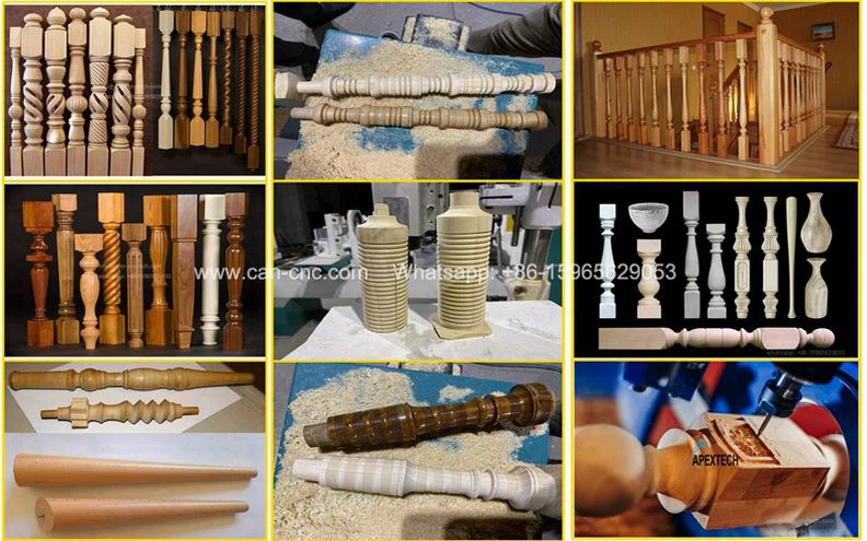 APEXTECH otomatik CNC tour bwa se sitou pou eskalye, balusters eskalye, pòs newel eskalye; pye tab manje; pye tab fen; janm tab sofa; janm poupou ba; janm chèz; pòs bra chèz; chèz chèz; ray kabann; poto lanp; baton bezbòl, manch ak sou sa.